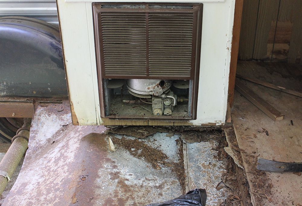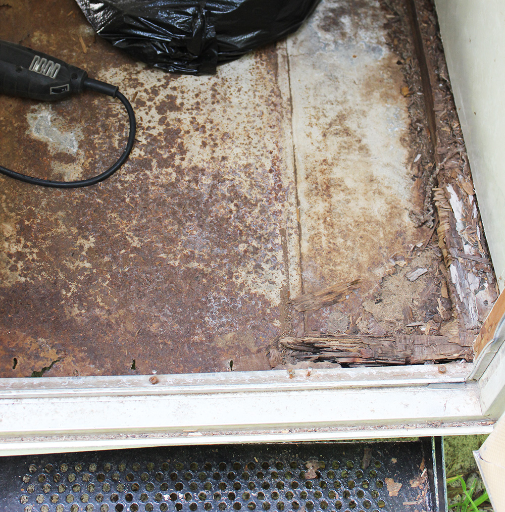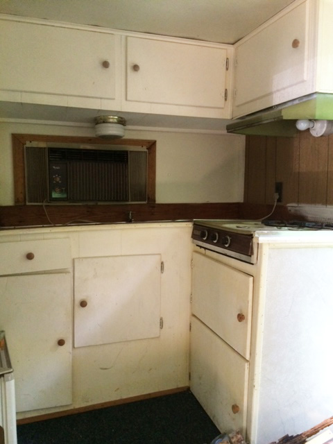 Unfortunately, but not surprisingly, the other half of the camper floor will now need to be prepared. You can't tell in this picture, but the counter and cabinets slant to each side pretty badly, it's because the corners are rotted. I'll start digging around this weekend and let you know what happens.