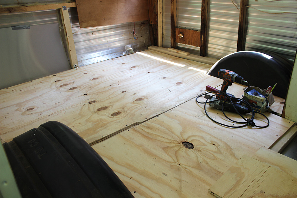 As for the actual campers progress, I have a floor! The back end was gone when I purchased it, so I have been spending my time building supports and getting it anchored back on the base.