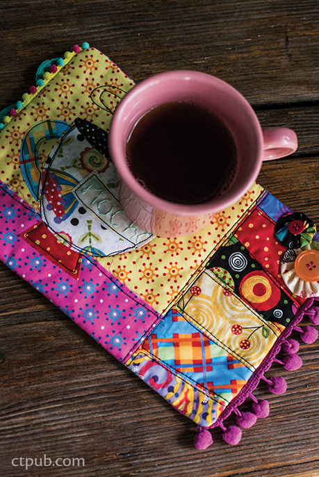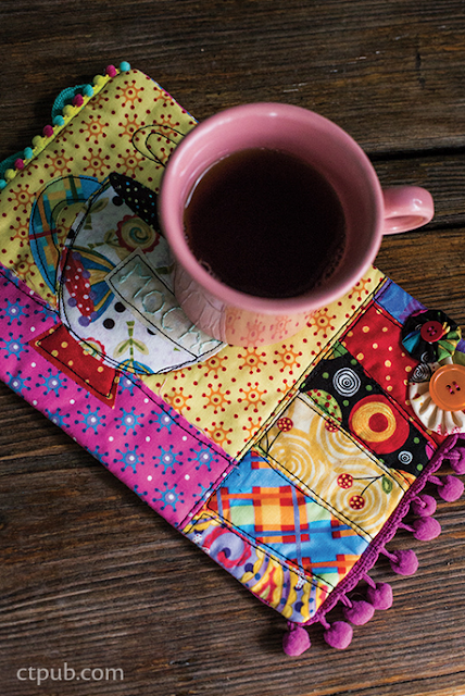 Then, because sometimes I just have too many ideas, each of the 11 projects has an additional 3 variations. Let's say that cute mug rug below is the project you are sewing.... well I show you another variation with a camper on it.