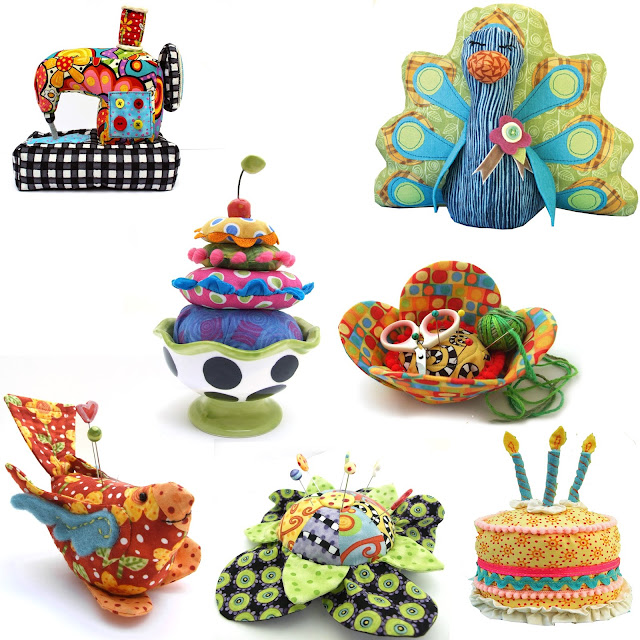 I just finished up the PDF pattern for the Sew Happy Pin Cushion and I thought it would be a good time to round up all of my pin cushion patterns, tutorials, and kits. You know, get them all in one place. Sometimes you just want to make a pin cushion, right? Pin Cushions also make great gifts. Here is a list of the Pin Cushions above, starting at he top left and working our way down.