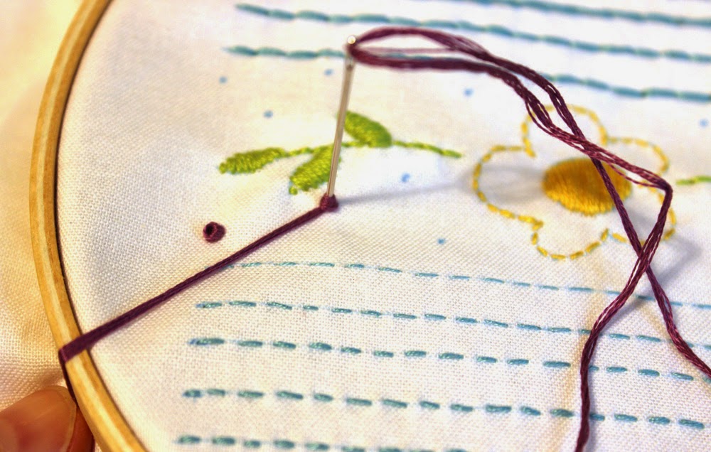 The french knot.... I will admit this one took me some time to master. It can be tricky, but with practice you'll get the hang of where your hands should be and it will then turn in to something easy to do.