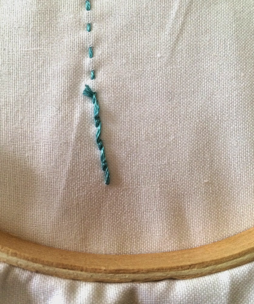 Send your needle back in to the fabric following the same line approximately 1/8-1/4" from where you came up.
