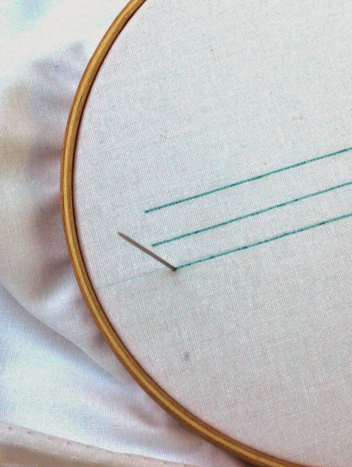This is our first day of stitching, I hope you were able to get everything transferred and your hoop set up yesterday. Let's get started on this stitching. Today's stitch is the running stitch, it's the most basic stitch.