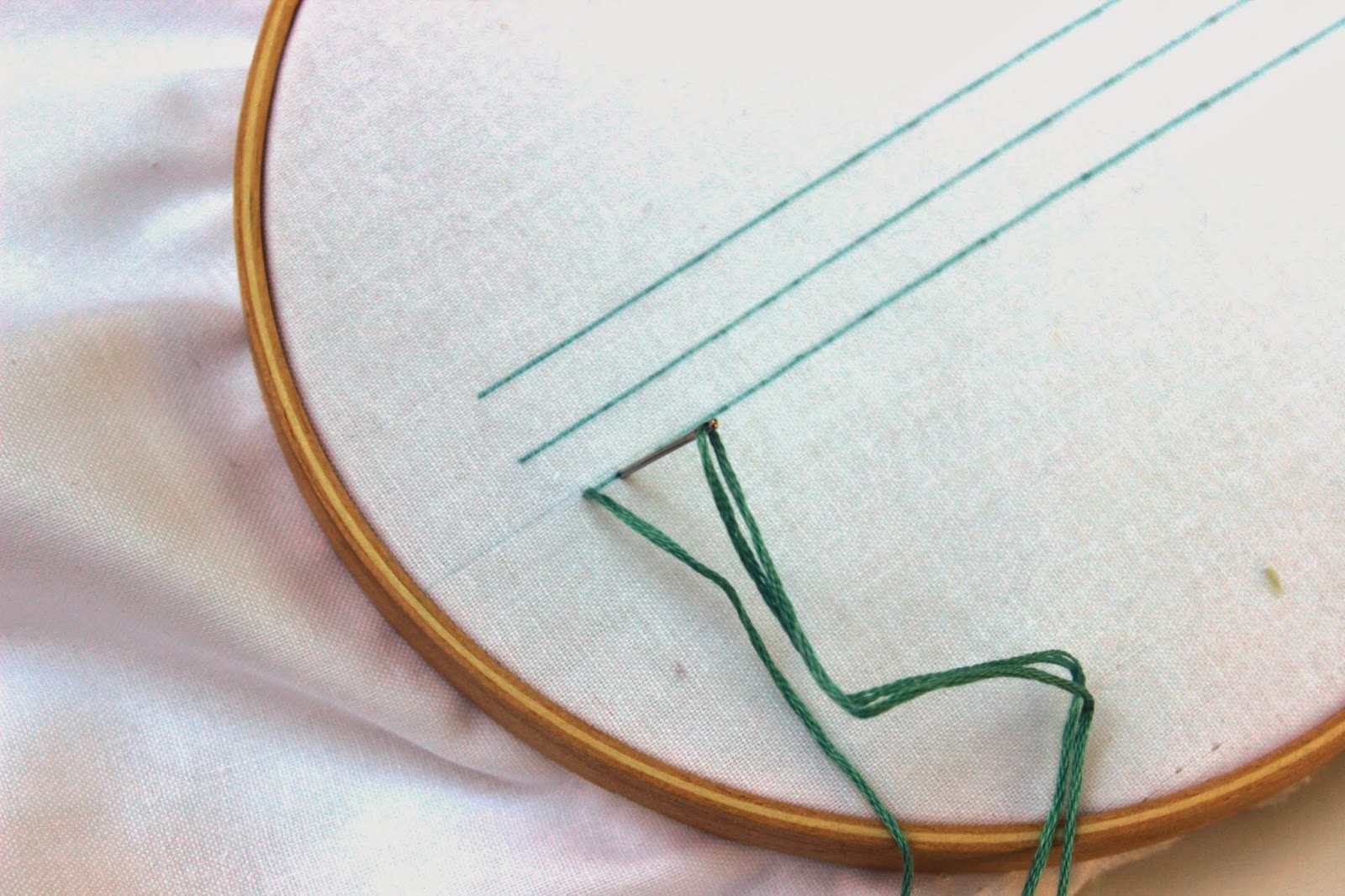 Let's say you make a mistake, maybe you stitch wasn't as straight as you were hoping for or maybe it was too long... you know how it goes. Good news, when embroidering it's super easy to fix those mistakes. Take the needle off of the floss and slide it under the stitch that you want to remove.