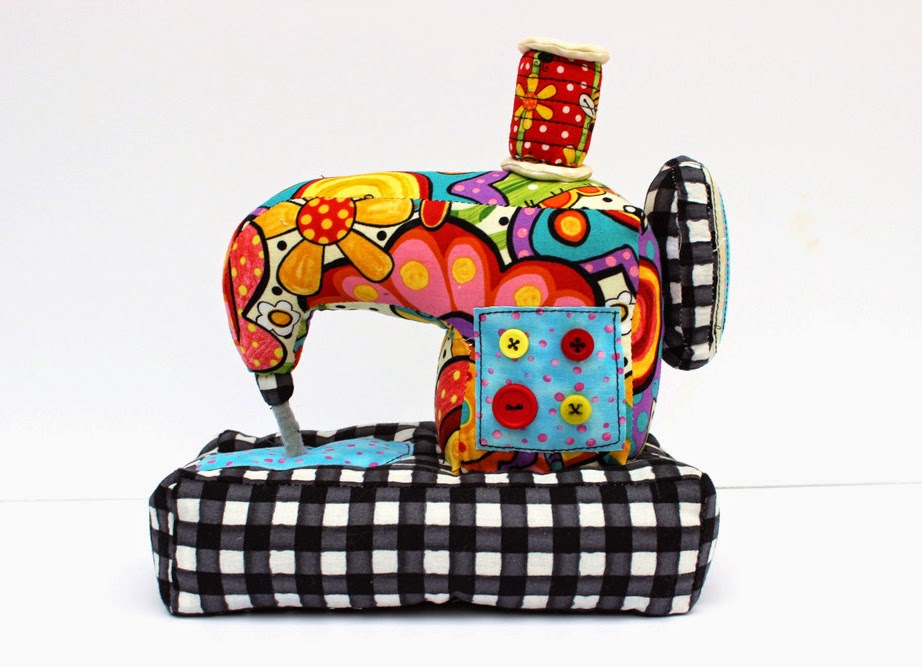 Day Two of my Six Weeks of Softies Challenge. I know I already have a Sewing Machine Softie Pattern. But I wanted a smaller pin cushion version. This guys is only 7 inches tall. It's sewn out of BugaPalooza fabric.