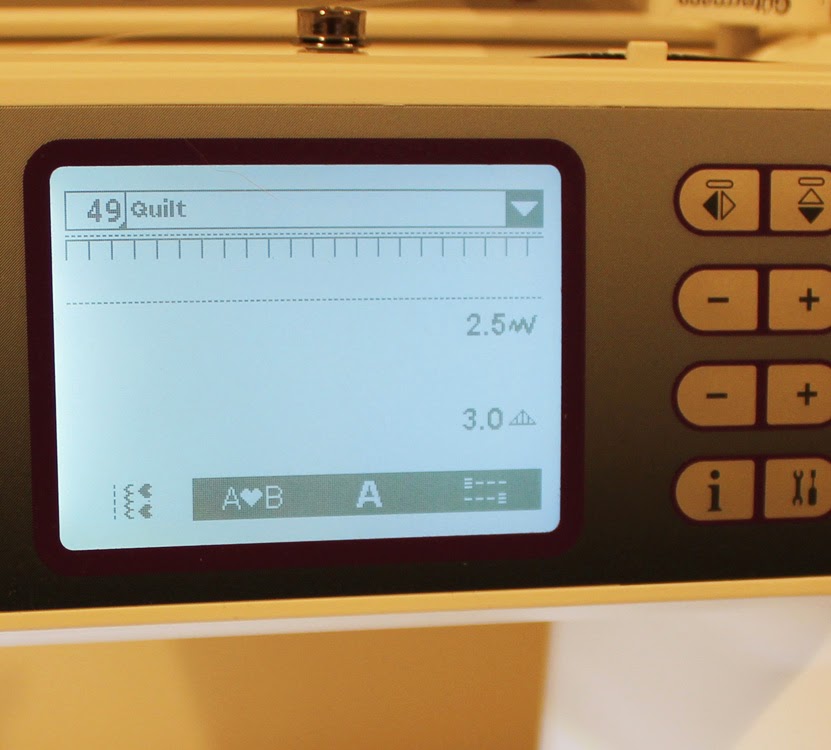 Now you are ready to sew the appliqué to secure it permanently. I like to used an appliqué stitch. It's also some times called a blanket stitch. A zig zag stitch works well too. You can see my setting here on my machine.