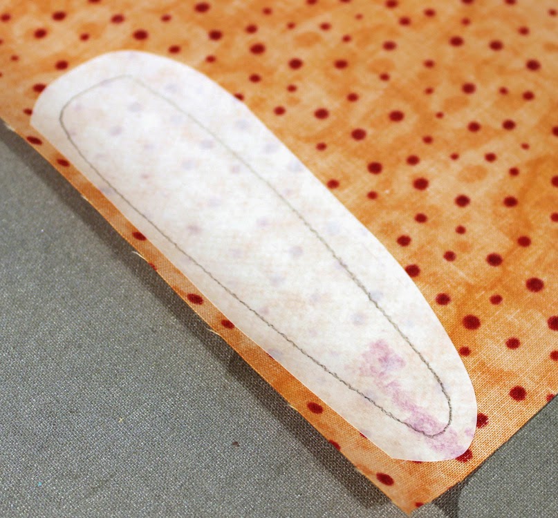 Choose your fabrics for the appliqués and iron the webbing side down on to the fabric. I use my iron on the hottest setting with steam. Let everything cool and then cut out the appliqué on the pencil lines. The paper gives everything a bit of stiffness so it's easier to cut out detailed work this way.