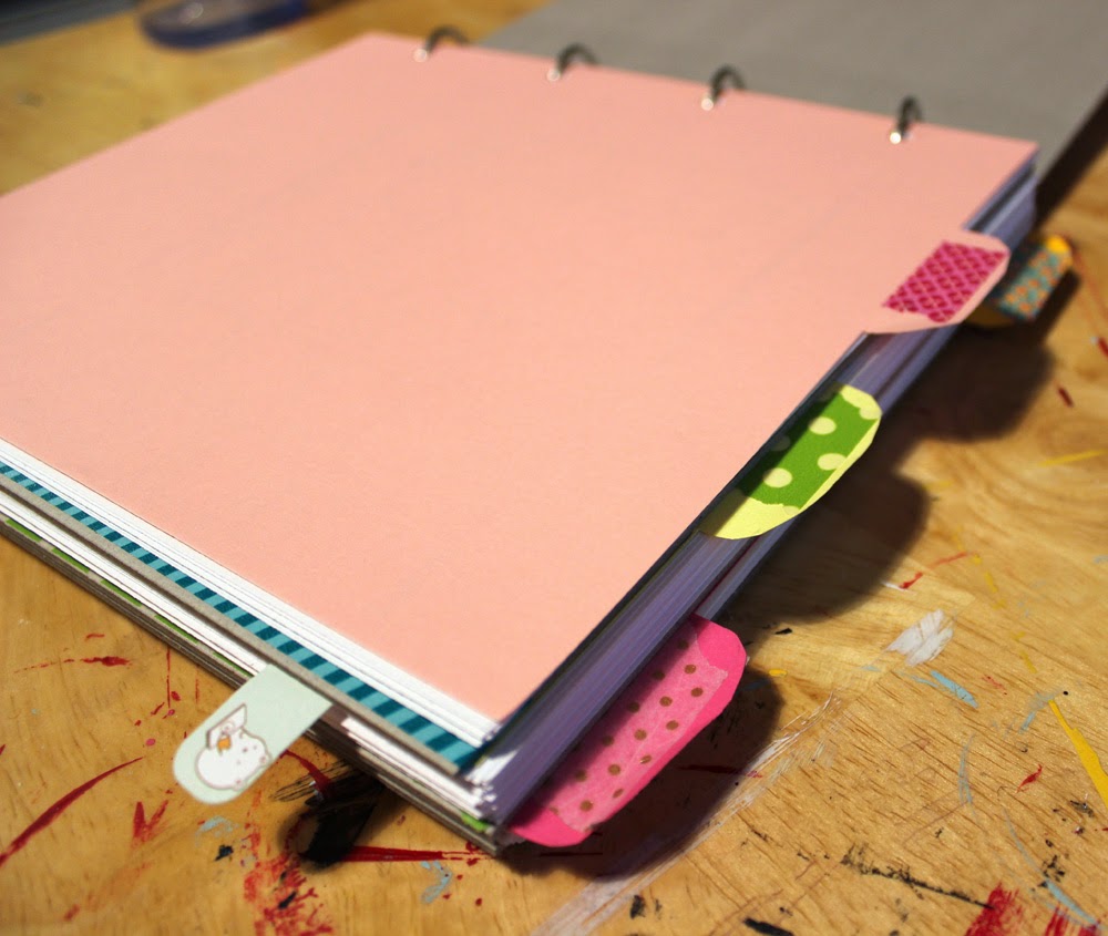 I arranged the pages according to the sections and put the notebook rings through them. Now these pages fit perfectly in a three ring binder and there are so many cute ones out there these days that punching three holes and adding them to a binder would be cute enough.