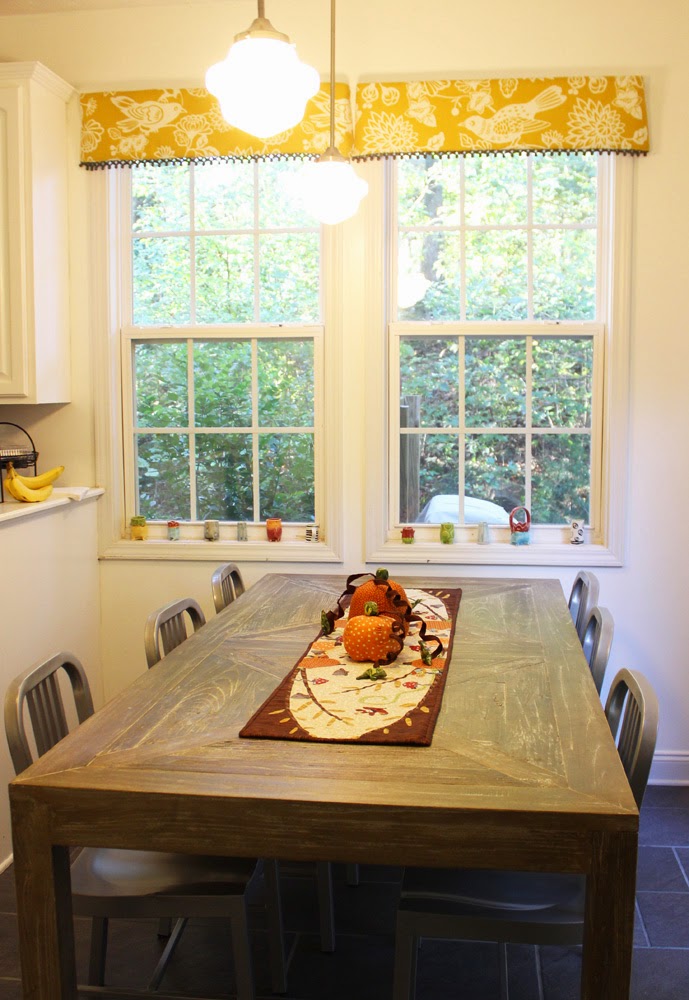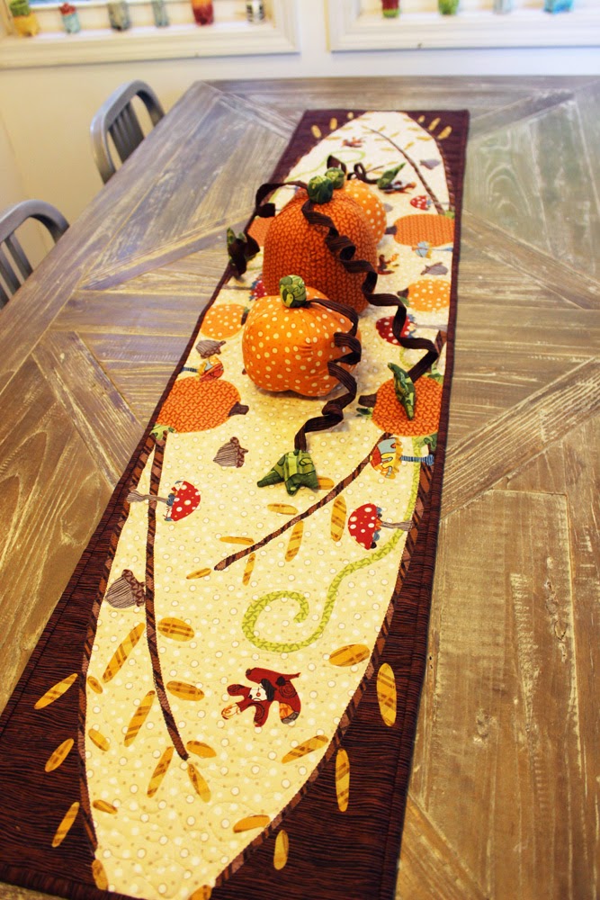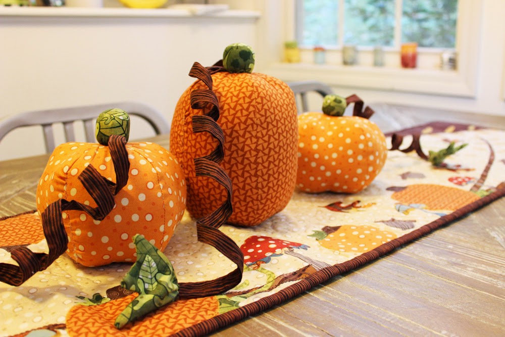 Right now I have the fall table runner as well as three stuffed pumpkins adorning my kitchen table.
