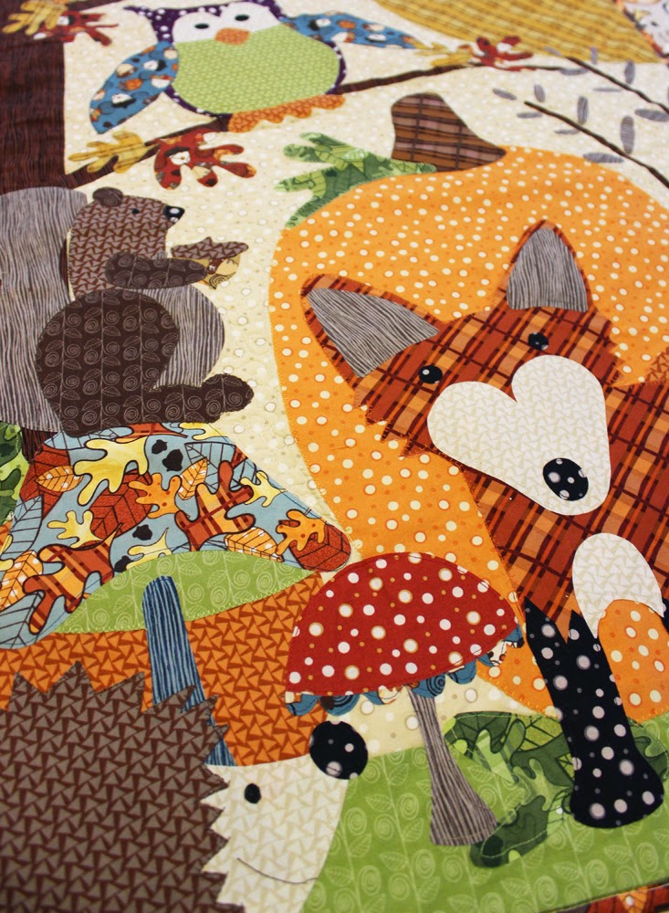 Hi there, Today I thought I would show you the projects that I have sewn up from the project booklet that coordinates with the A Walk in the Woods fabric. The booklet has patterns for a wall quilt, placemats, a table runner, stuffed pumpkins, napkins, and napkin rings.