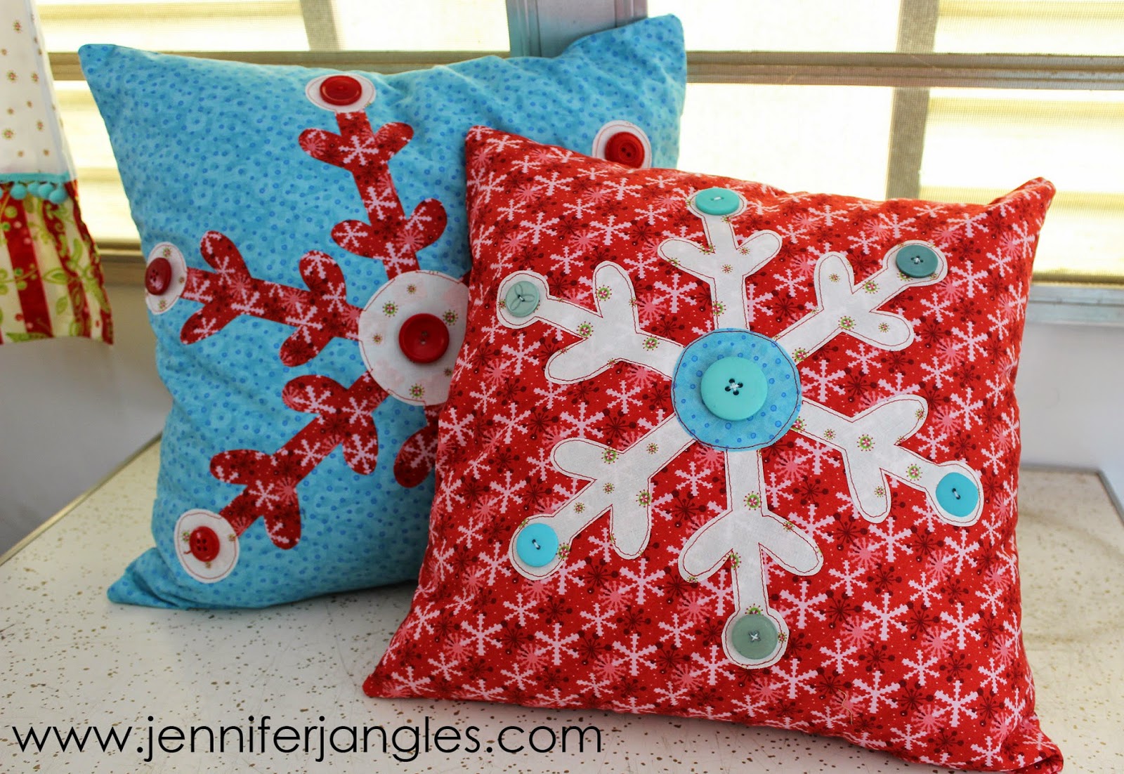 Holiday Project two is coming at you today. It's a pair of appliquéd Snowflake Pillows. I'm thinking there needs to be a matching quilt in my house with these as well. You can find the printable appliqué pattern here. These two pillows are 16 and 18 inches. The appliqués are for these two sizes, but you could always play around with your print settings and make the appliqués larger or smaller to meet your needs.