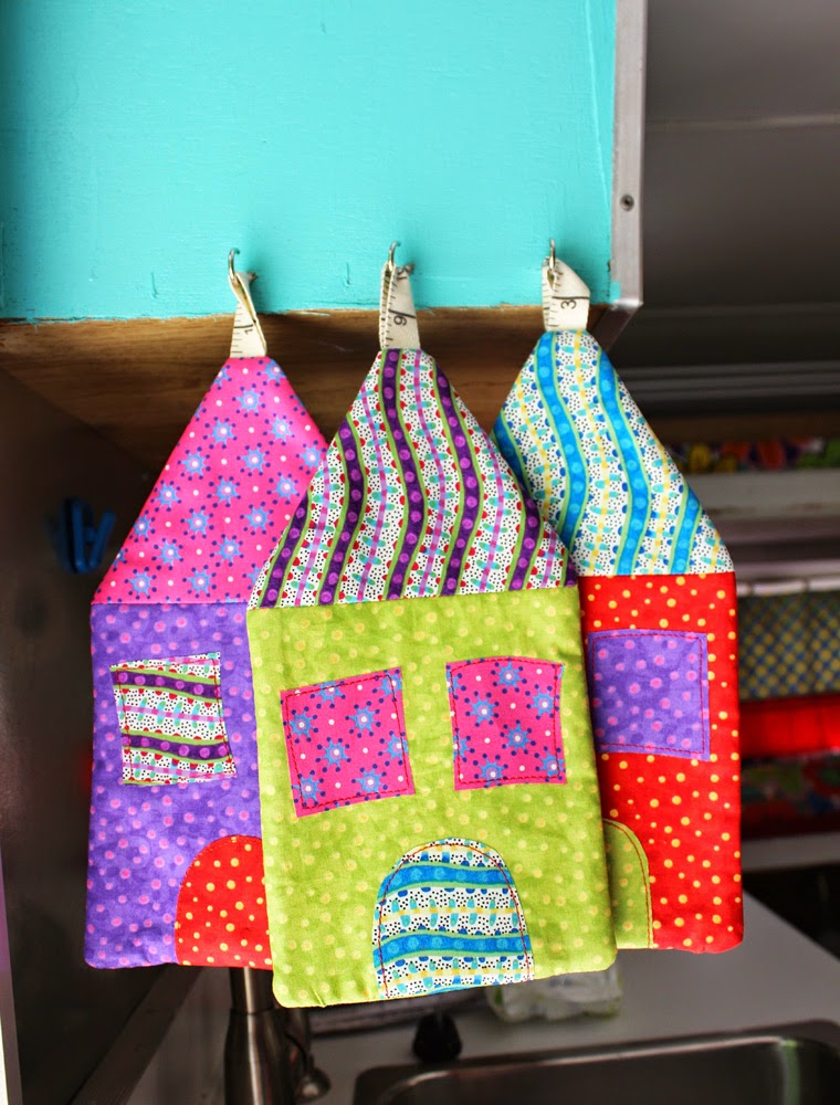 4. Place the front of the house on top with right sides together. Sew around the outer edges leaving a 3" gap for turning. Clip any corners and turn right sides out. Press.5. Tuck the raw edges into the opening and hand stitch closed.