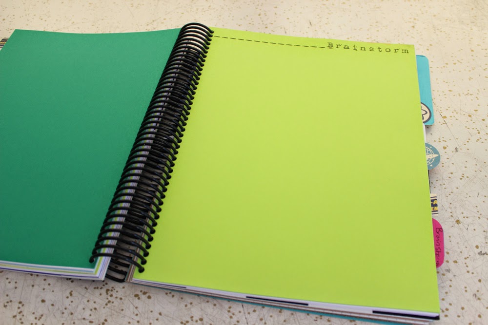 I made a few other pages in my Photoshop program that were customized as well. Then I added some graph paper and some lined paper. Then for fin I added some colored papers. THEN, I found these awesome file folders at Target. I cut them apart to make dividers and covers for the notebook. Once I had the entire stack printed and ready to go I took them to my local print shop to have it spiral bound.