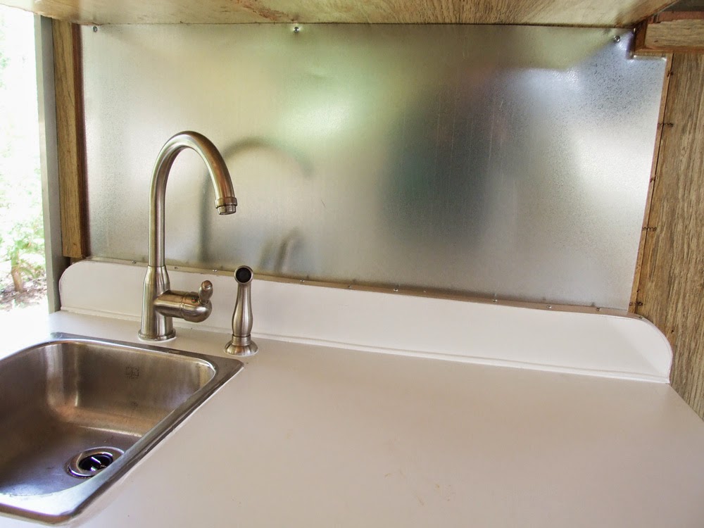 The backsplash is galvanized steel, that way I can hang things with magnets on it. I'm thinking spices, hooks for potholders, magnet clips, etc. In this little of a space, everything has to be used for storage.