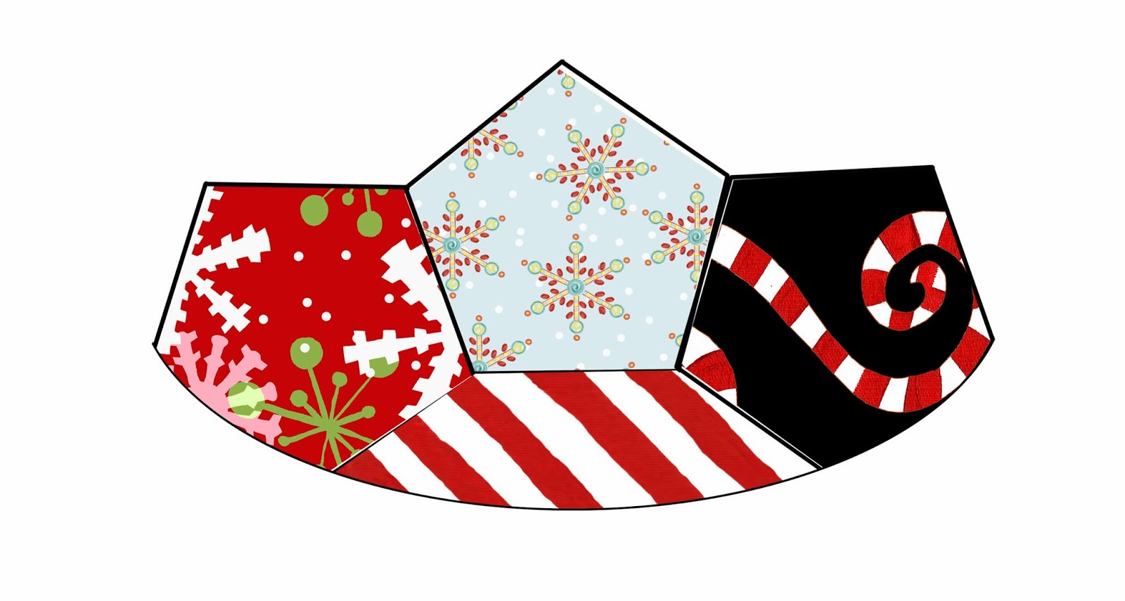 1. Cut 12 pentagons using the Pattern Pieces. A 1/4 inch seam allowance is built in to the piece.