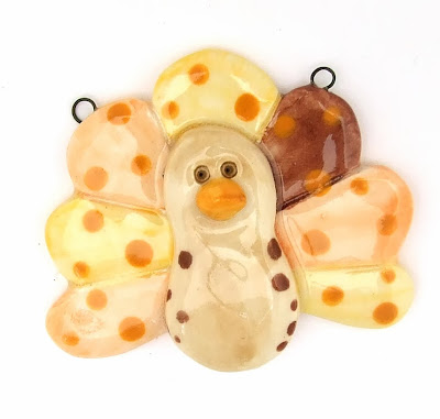 I sent out my Holiday Projects newsletter this past week and the turkey pendants were a hit. I'm going to make one more batch of them next week so I am taking orders for them now. If you would like one send me an e-mail at jennifer (at) jangles.net and let me know what you would like. I'll start making them Nov. 1st. You get two matching round ceramic beads with them and they are 14.00.