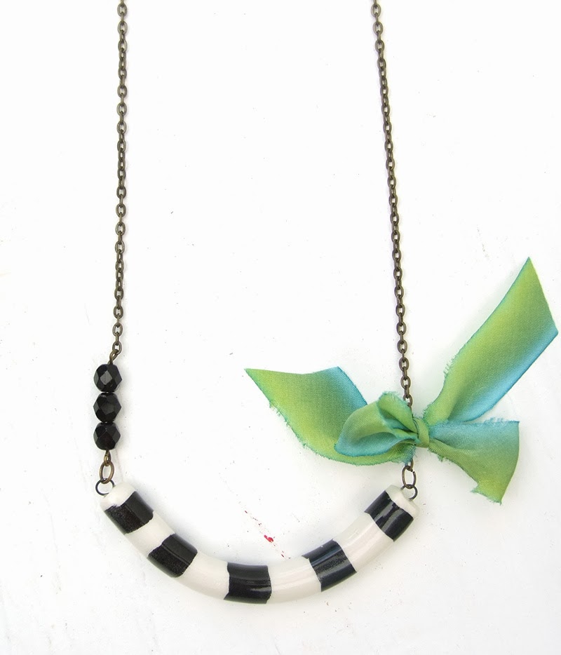 1 Ceramic Striped Tube Pendant