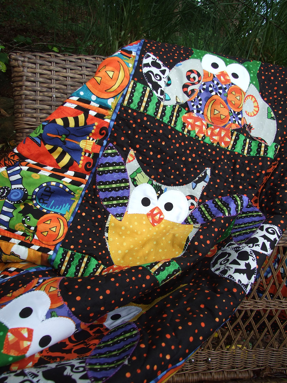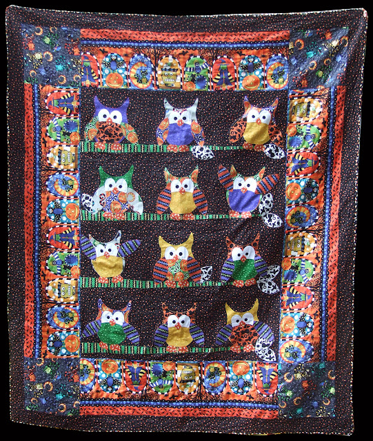 My new Not So Spooky Halloween fabric and It's Christmas! is arriving in stores right now, and since the day I turned this line in I have been wanting to sew my Okey Dokey Owl and Friends Applique Quilt from the fabric.