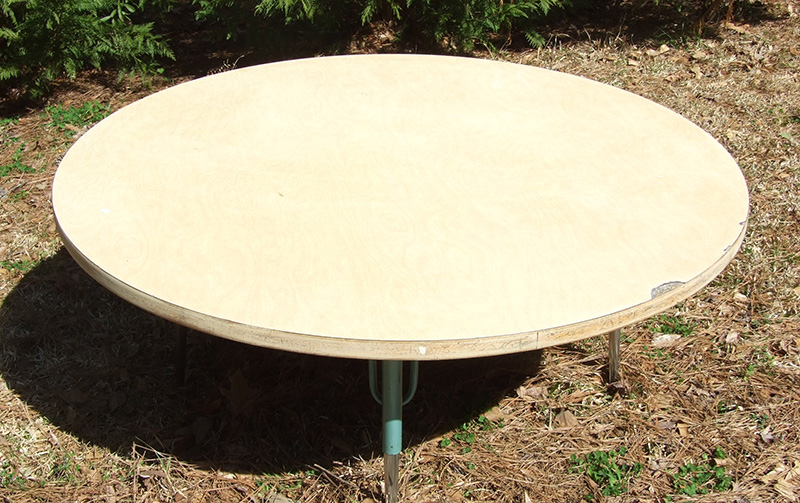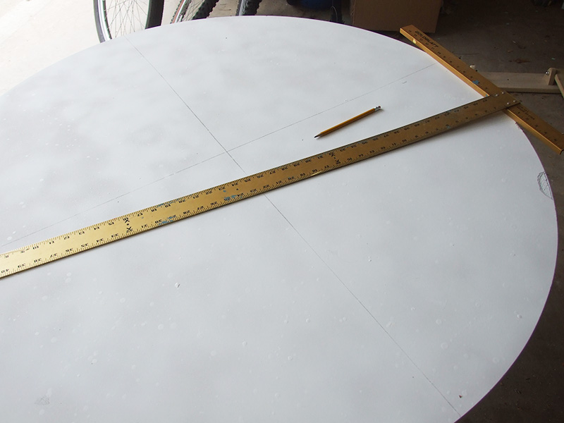 Using my drywall ruler, I found the center of the table and marked an "x" on it.
