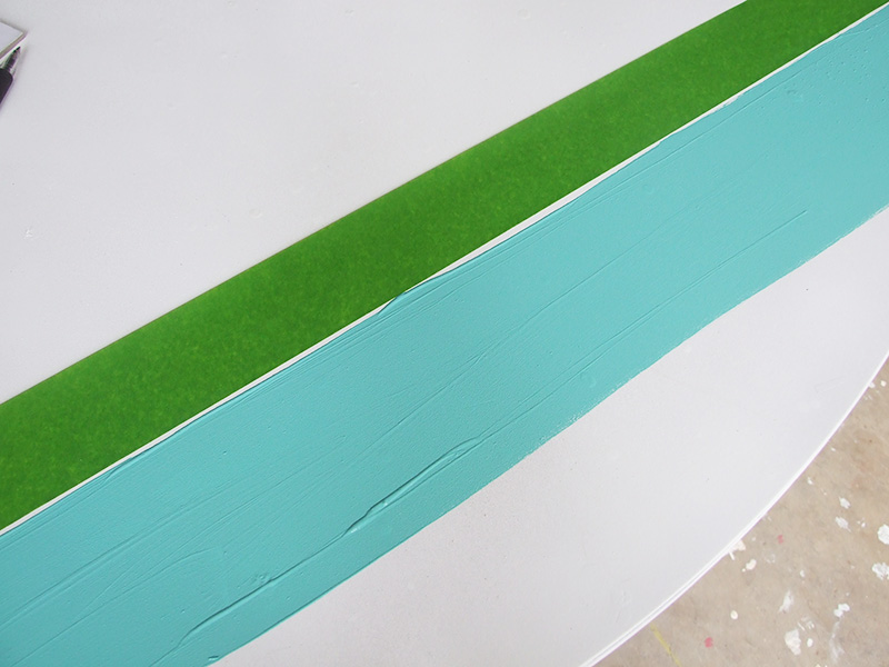Since I like things to look handmade or hand painted I didn't want super straight lines. I put a line of tape down to use it as a guide and painted up close to it but not over it.