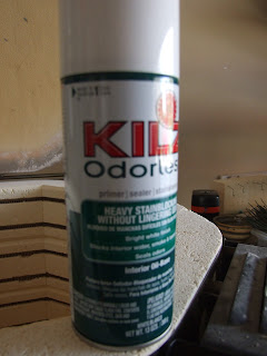 The top of the table is formica so tat was going to be a challenge to get the paint to stick. I did my research online and then headed to Lowes. Kilz primer was what I was looking for. It turns out they have a spray version.Here's a picture of the can.