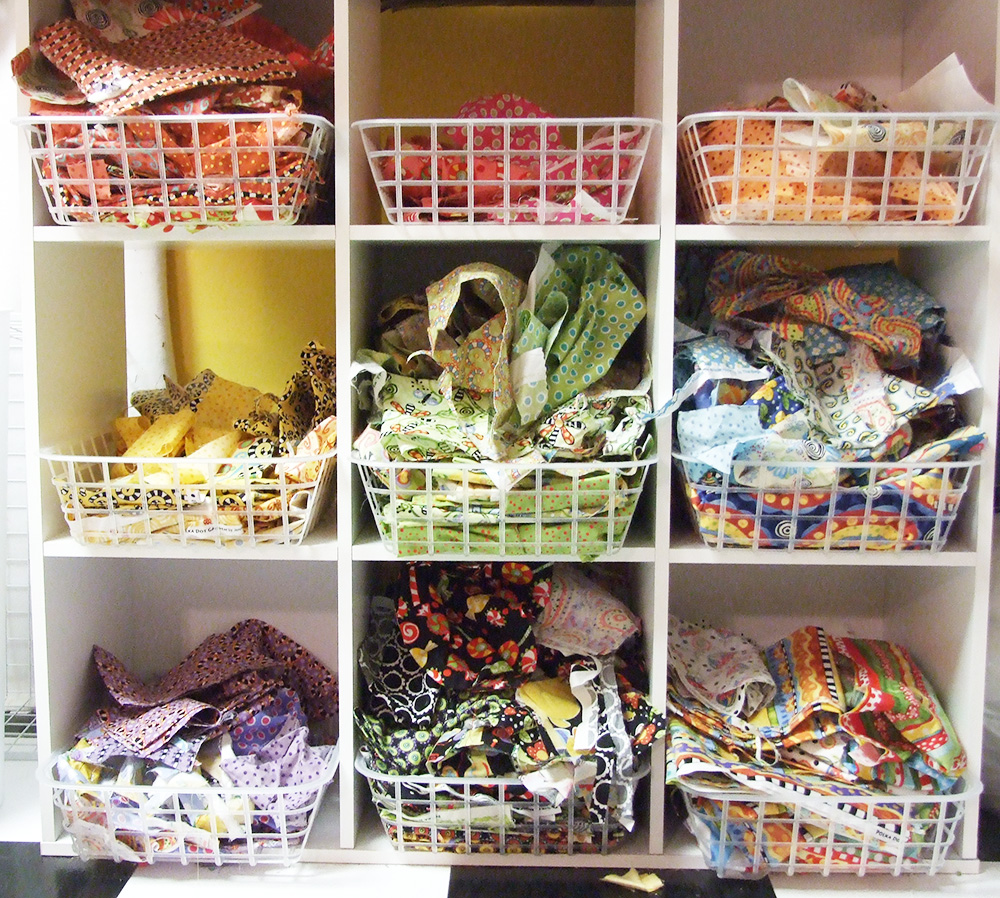 Organized my scraps by color in baskets
