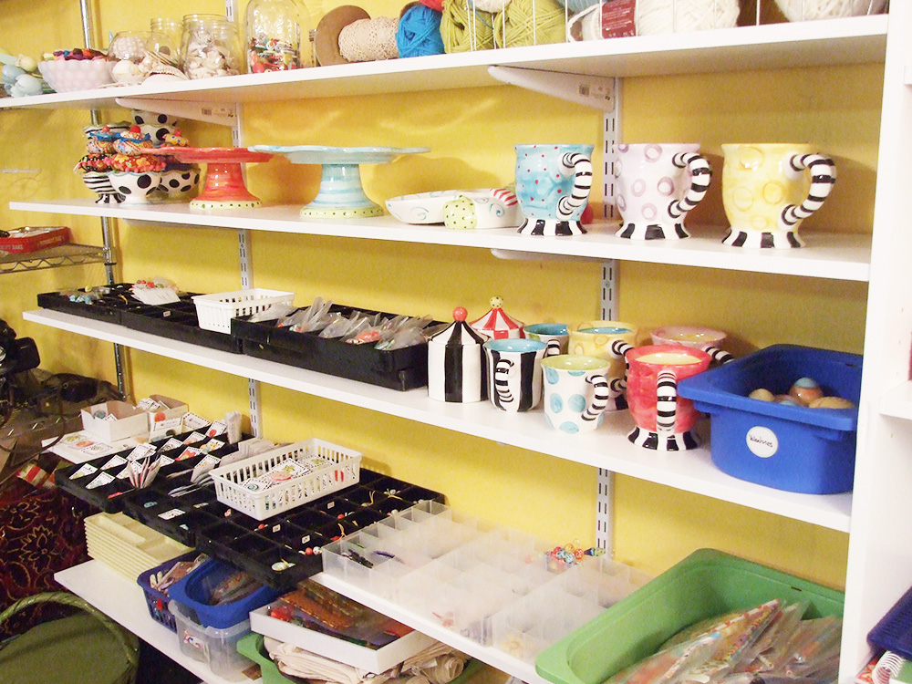 It's a tad sad though, because these metal shelves have been with me since 1996, when I started my business. Kind of crazy, they have been well used and they are starting to bend they have been so well used. They are in my garage now waiting for me to take them away. But for now I am too attached to take them. It's funny, because I'm not usually attached to things.