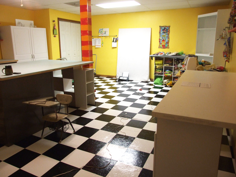 I told you this one is going to be a tricky re organization to get everything to fit. I love stations. I like to have a station for each of my "usual" jobs. That way I don't have to clean a surface off to start something new. I love to re-use and the doors from my first quilt market booth have become table tops. I think I have six in all. So I have put most of the furniture in. Now I am going to spend some time thinking about where each station will fit before moving everything.