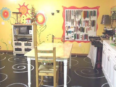 I don't show this studio much because I have my new studio. I still work in this one, this is where I sew, design, and paint. My new studio is where I make and glaze all of my buttons, beads, and pottery. For some of my new blog readers, here are some photos of studio number two.