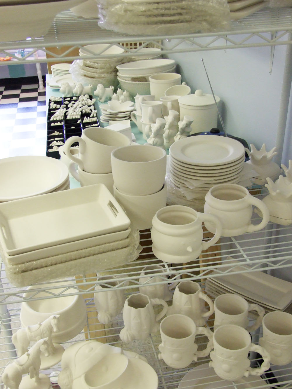 And last but not least. Pottery to paint! I am sure I mentioned that we are having classes starting in a few weeks. A few nights we are going to be open for paint your own pottery night. You know, bring a group of girl friends or your date and come paint. I looooove to paint, it's my favorite thing ever! I wanted to share the fun with some of the local pottery or paint loving people. To make a long story longer, a nice woman from dealmobs came to my studio a few weeks ago, (it's a really cool "groupon" site) and I signed up to have a discount for paint your own pottery night, you know, good advertisement, right? She gave me an estimate of how many people I would have buy the coupon and since I am totally new I wasn't even expecting that number. Well, it turns out in that one day I sold four times what she had estimated! Wahoo, that is exciting. I looove that so many people want to come and paint pottery. Of course that means a lot of last minute bisque ordering and class adding. I have the bisque as you can see above.... oh it makes me want to come site and paint all day. Open studios times have been added and we are going to add even more this week(check out Facebook for the latest). Whew! But oh so much fun!