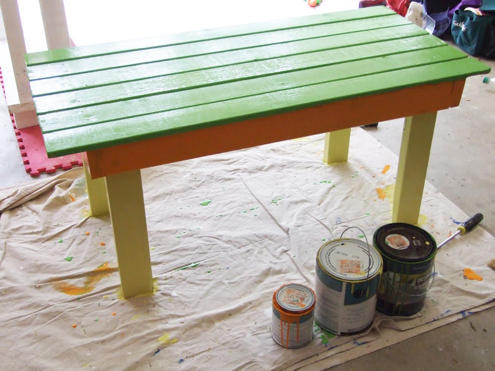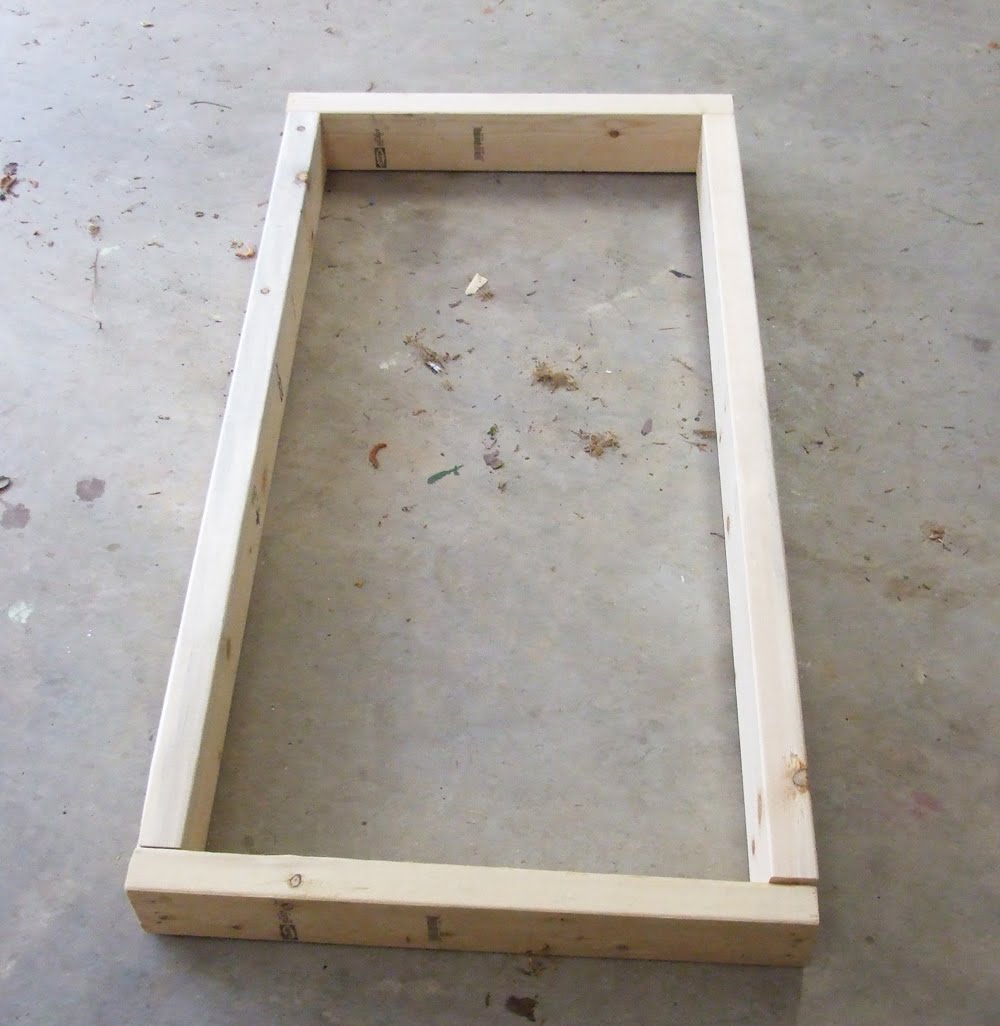 Next, I nailed the four legs into the corners of the rectangle. Looking like a bench already eh?
