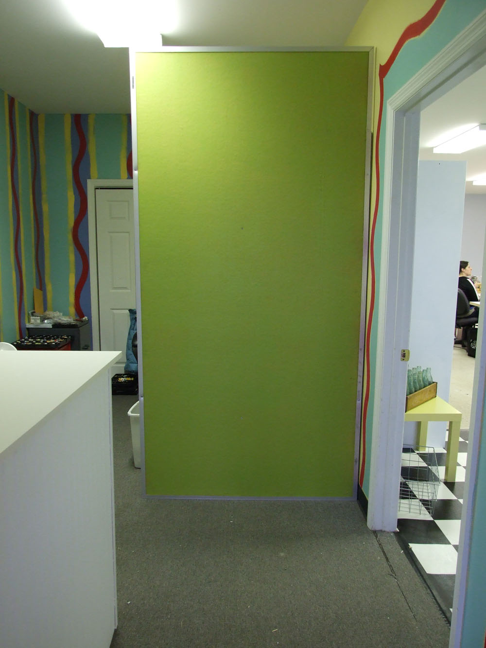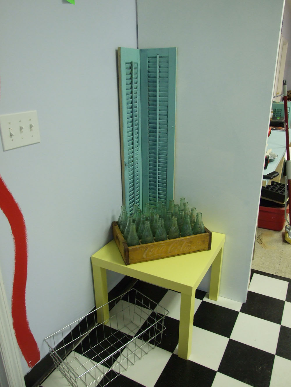 But for now here is a tour of my very pretty but empty store. The picture up top is of my new counter. Built it all by myself. Behind the counter is my chalkboard that is painted on the wall.