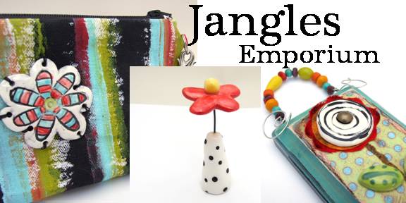The Jangles Emporium is stocked with great finished jewelry, ceramic gift items, handpainted supply bags, wall hangings, and more!