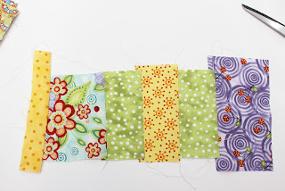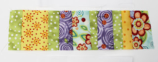 Once I had my strips sewn together, I went back and with a rotary cutter cut some of the fatter strips and added more strips in between.