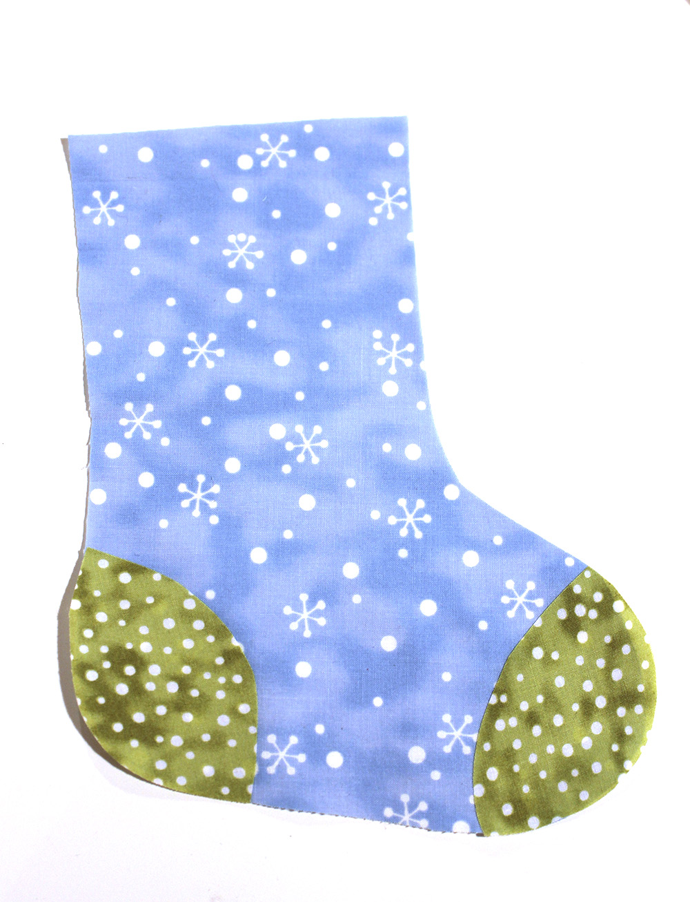 Cut out on heel and one toe and either pin or fuse them to the front side of the stocking.