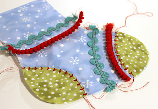 I didn't get a picture of this step, so I worked it up on the computer. Align the top edges, with the right side facing up on the felt. Sew across the top. Repeat for the back for the stocking as well. Press open.