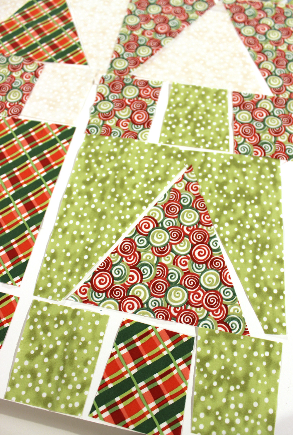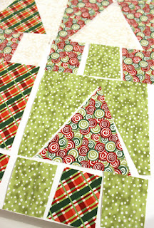 Happy Holidays! Here's fun wonky block wallhanging for you. You can make these trees any size. These blocks are about 5" x 7", but you could make one big one and decorate it with ornaments. Or what about making the trees and turning them in to ornaments? So many possibilities.
