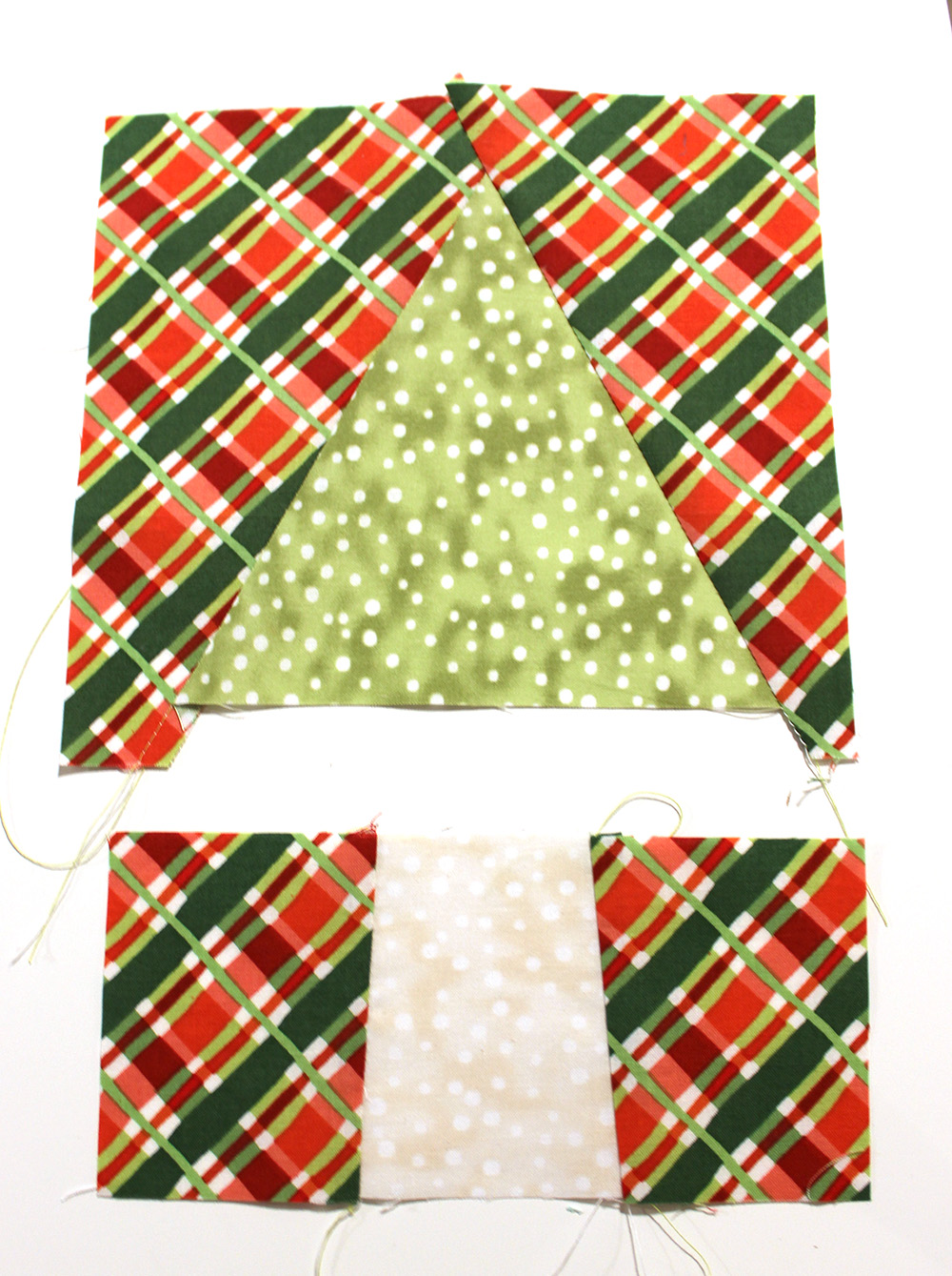 Stack all four of the blocks together and with a rotary cutter, cut the bottom of the blocks off. This rectangle you cut off will end up having the trunk, so cut it at the height you would like the trunk to be.