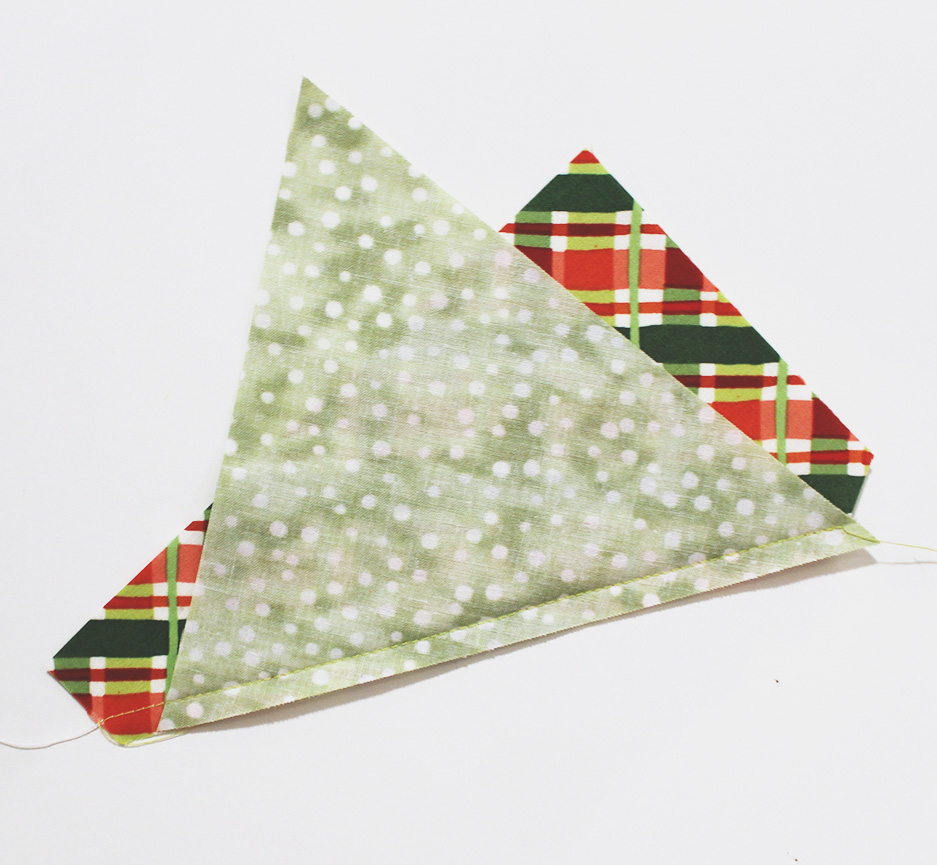 To assemble the blocks, start with the last angle you cut. Place the right sides together and sew a 1/4" seam.
