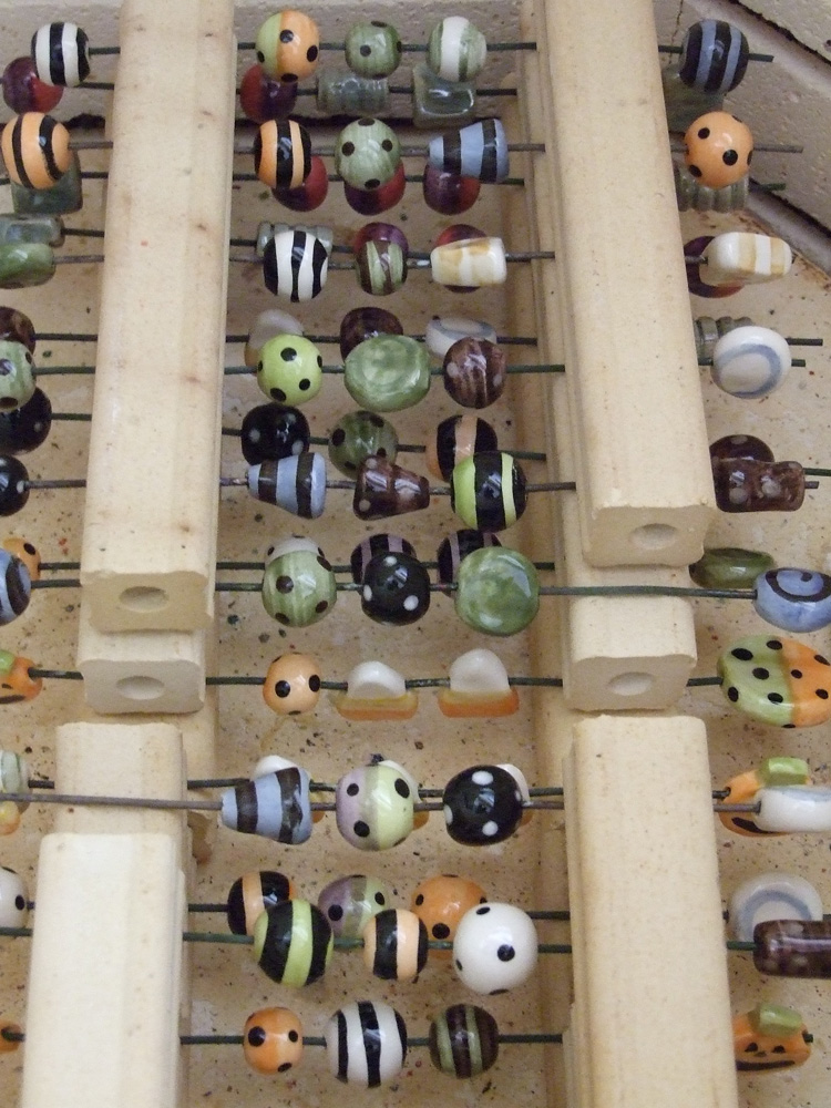 I just snapped this photo and had to show you what I just unloaded from the kiln. Look at all those fall and Halloween beads. Fall is around the corner. I am just like those squirrels out gathering nuts right now preparing for whats around the corner. Oh, except that I am making beads to prepare not nuts, (don't want to confuse anyone :) )