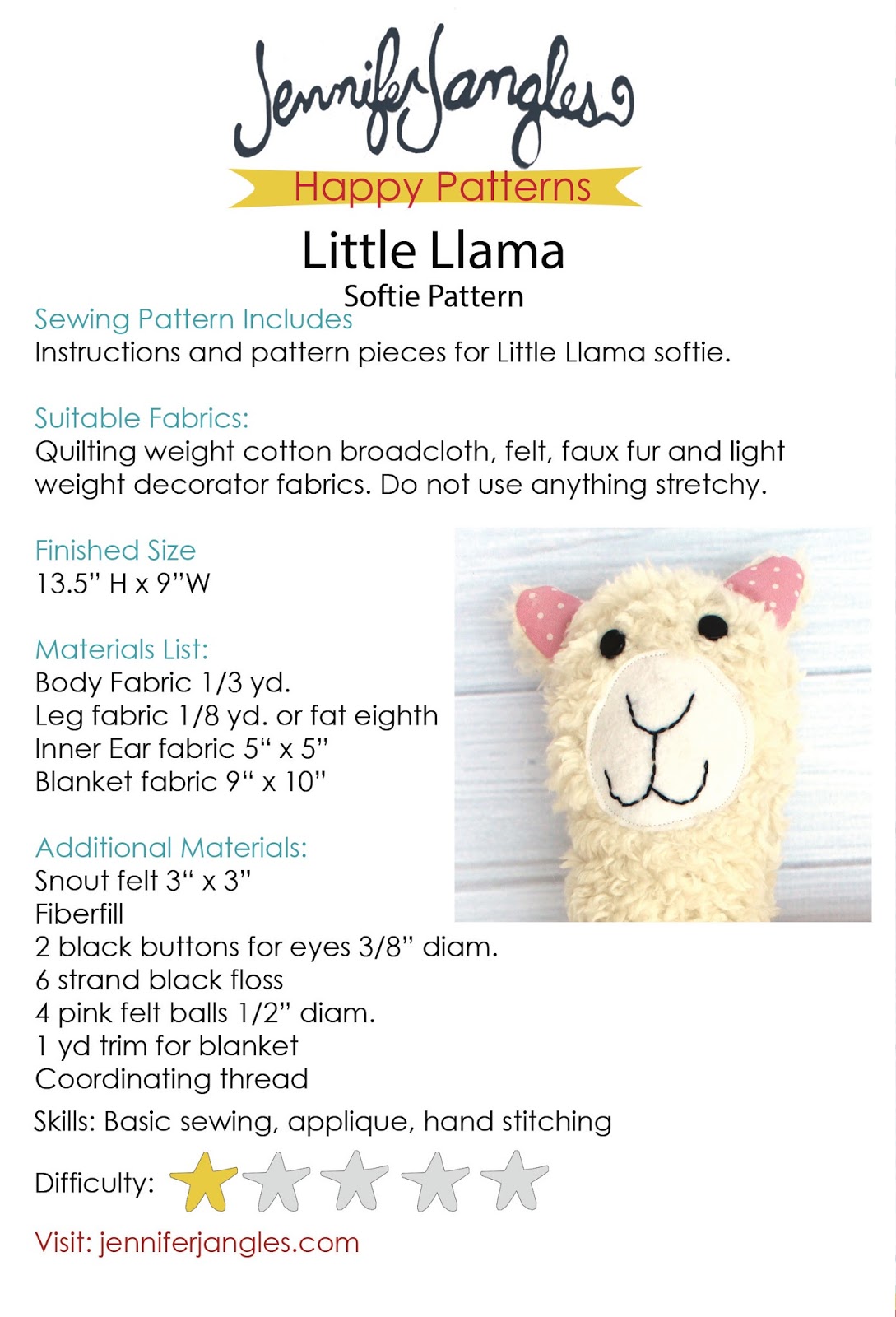 And to entice you even more, if you haven't already decided, we'll have a hashtag for Instagram or you can post on my Facebook page your work in process or your finished softie. I will randomly choose a winner from Instagram and a winner from Facebook to each win a 50.00 Jennifer Jangles gift certificate.